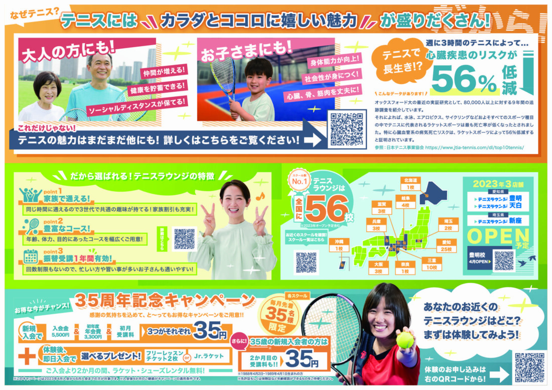 テニスラウンジは愛知県・岐阜県・三重県を中心に、関西・関東・北海道・沖縄に店舗を持つ日本最大級のテニススクールです。