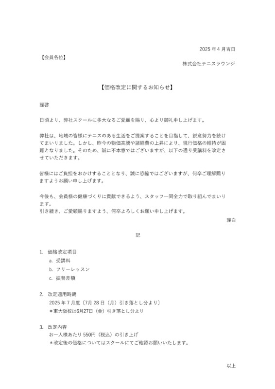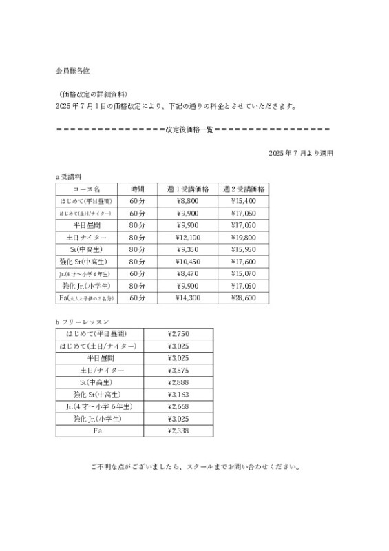 受講料の価格改定につきまして、ご案内を申し上げます。