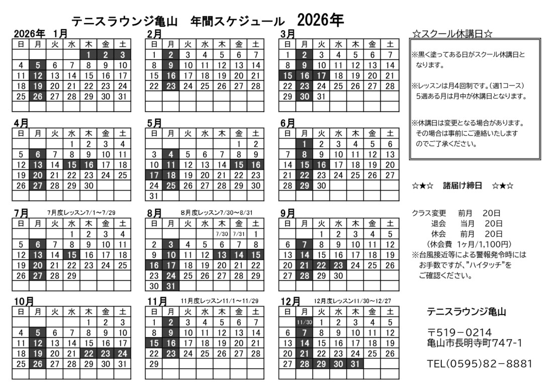 休講日のお知らせ