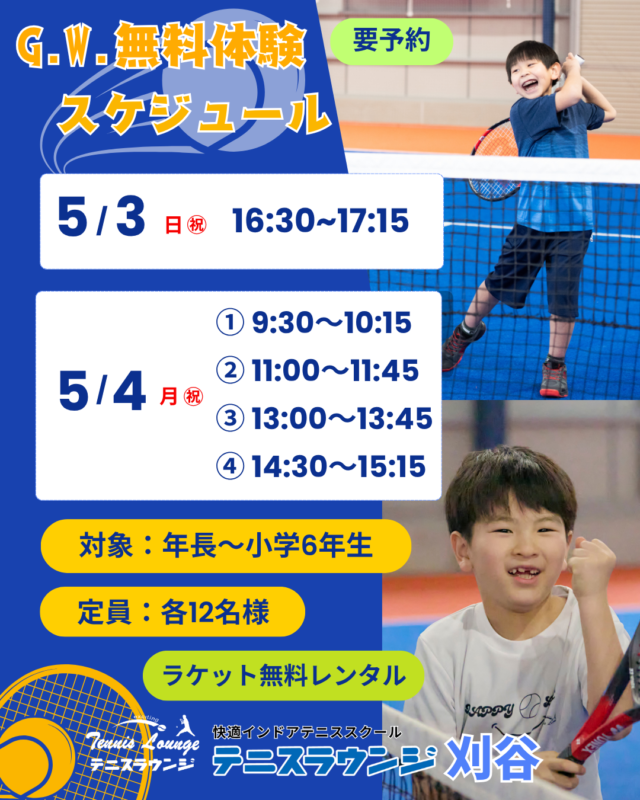 🎾ゴールデンウィーク無料体験会🎾