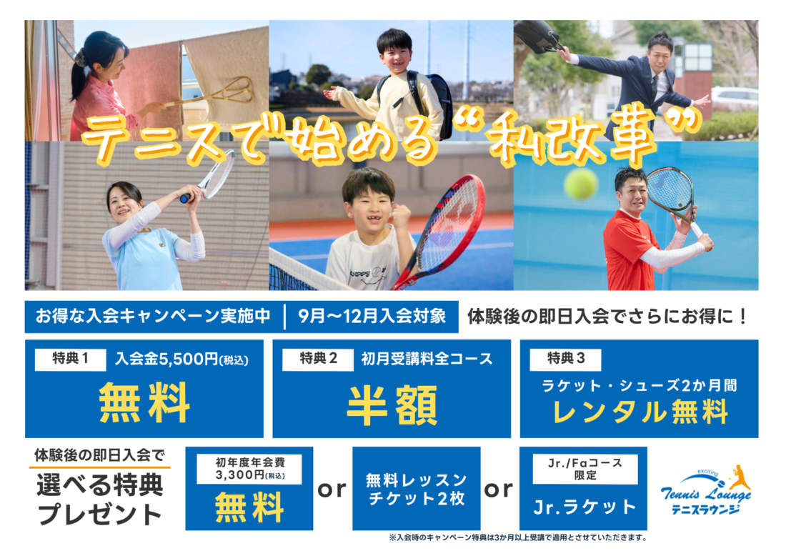 ◯全国スクール一覧 ◯テニスラウンジの特徴 ◯テニスの魅力 ◯体験レッスンのご案内