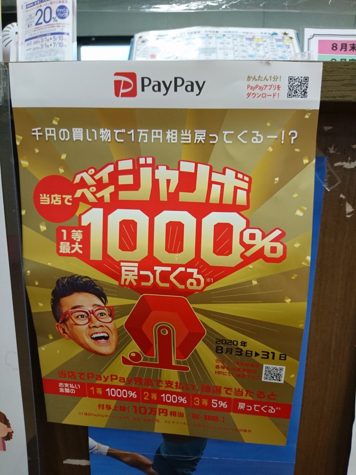 ペイペイジャンボというpaypayで支払った金額に対してポイント還元が抽選で戻ってくるそうです❗