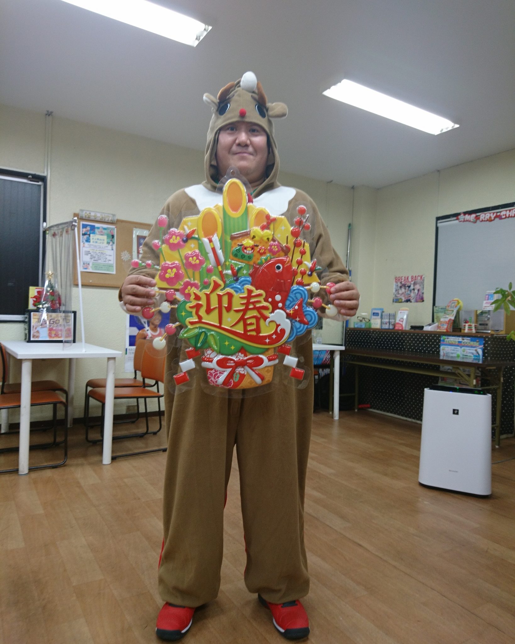 つねコーチはトナカイとサンタで レッスンをしましたよ♪ サンタはトナカイの後ろに隠れています。