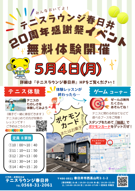 ぜひ、この機会にご家族、お友達とテニスを始めてみましょう☺️