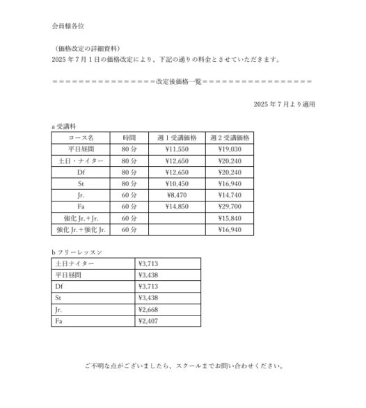 受講料の価格改定につきまして、ご案内を申し上げます。