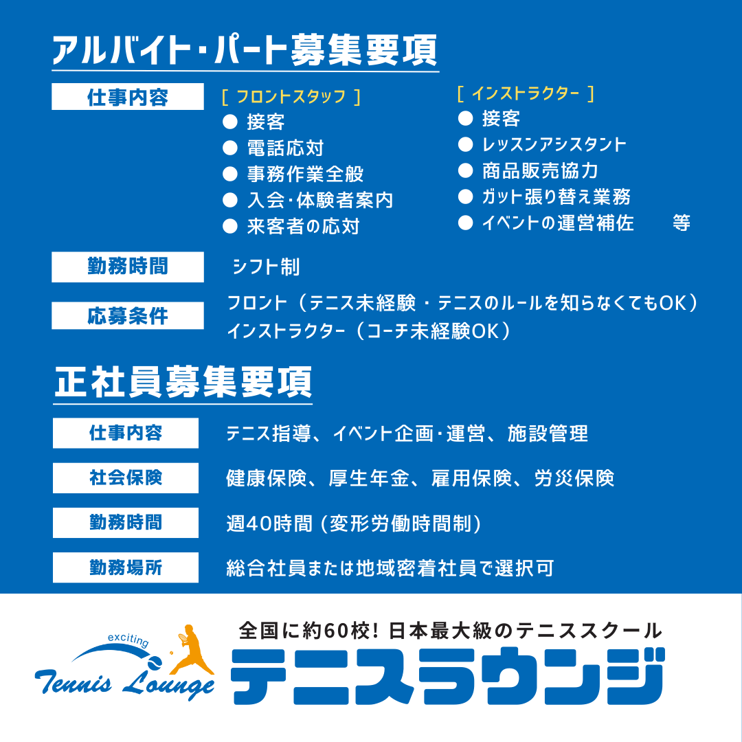 【テニスコーチ・フロントスタッフ募集中!】