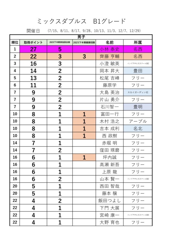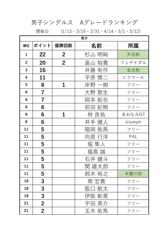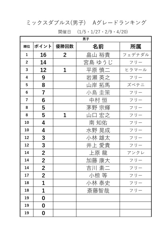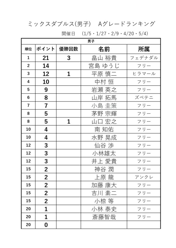 ☆【試合】初中級・中級レベル(【TL3、2(旧名B1、B2クラス)・・・試合経験はあるが、試合レベルの高いクラスだとあまり勝ててない方。ダブルスルスの場合はペアの方が参加レベル以上の場合にはこのレベルの大会は出場不可となります。またこのレベルの大会に参加されて、過去を含めて、3回優勝した場合は、TL3レベルの方はTL2へ移行、TL2レベルの方も同じく過去も含めて3回優勝された方は、その次の大会より次回からはTL1でのエントリーをお願いいたします。レベルは各種目に応じて別々でレベルを判断させて頂きますので、宜しくお願いいたします。