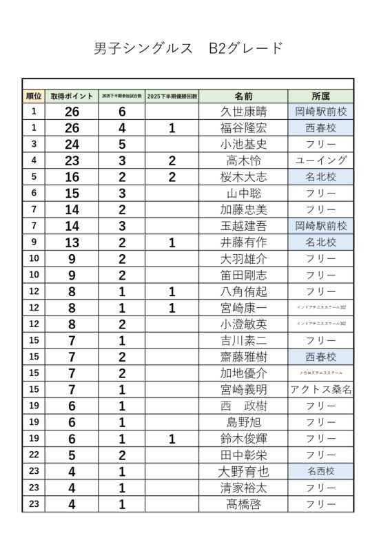 2026年1月の大会よりレベルの呼称が変更になります!!!