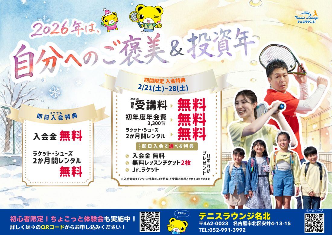 ・上記期間内に「体験受講」「体験予約」「入会手続き」「入会予約」のいずれかをされた方が対象です。
