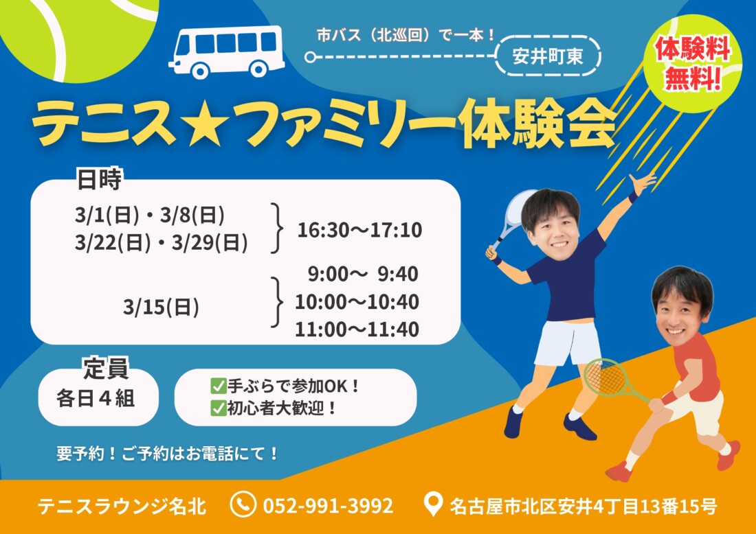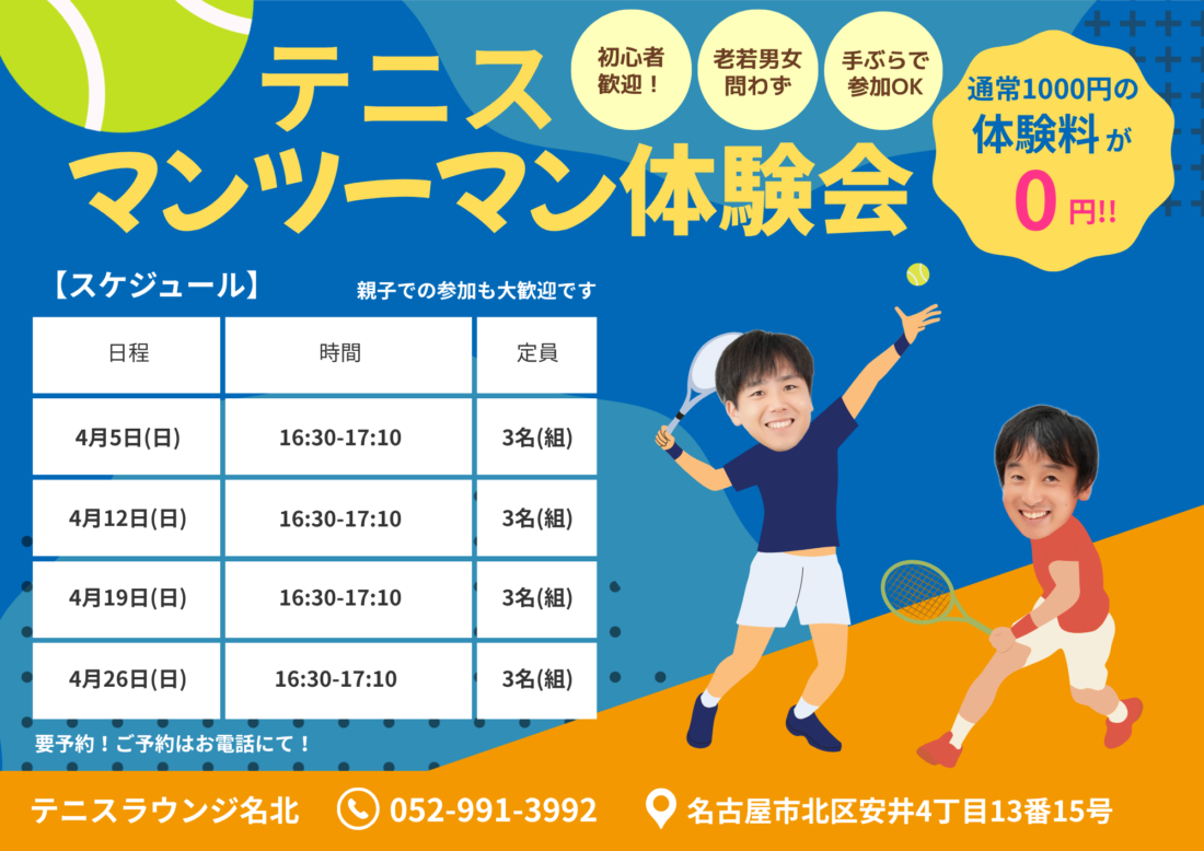 テニスラウンジ名北では、テニスラウンジを初めての方対象に
