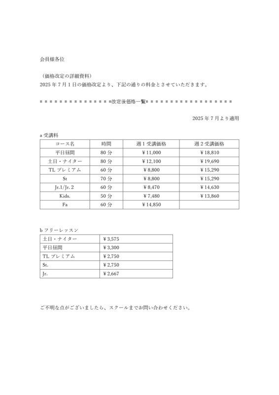 受講料の価格改定につきまして、ご案内を申し上げます。