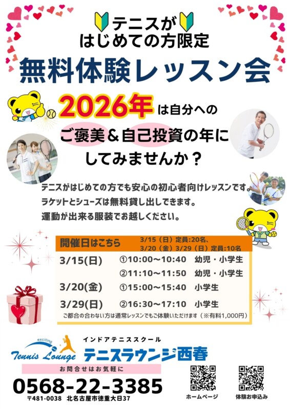 テニスにご興味をお持ちの方はまず「春のテニス体験会」をお試しください!