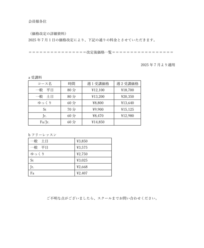 受講料の価格改定につきまして、ご案内を申し上げます。