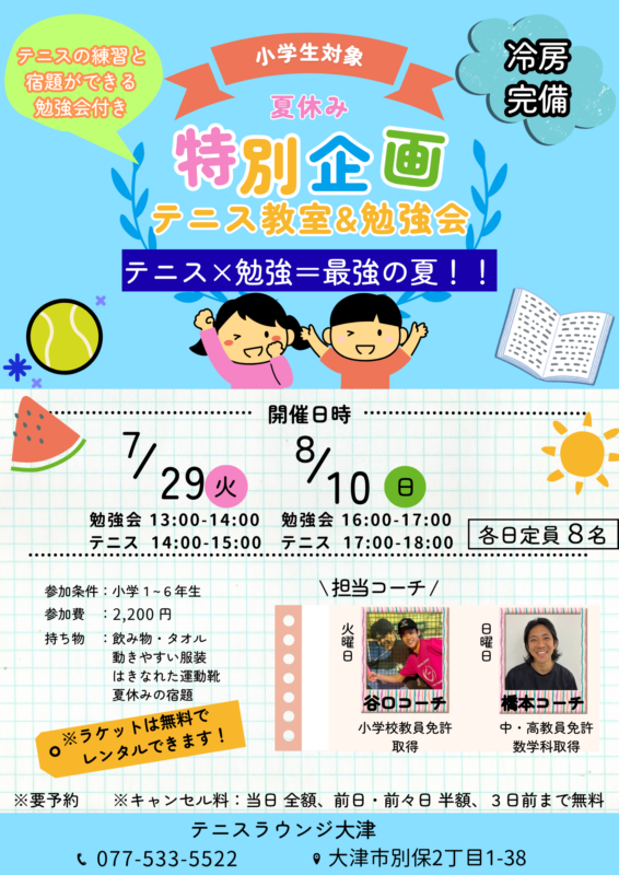 この度、ジュニアを対象にテニス教室&勉強会を開催いたします!