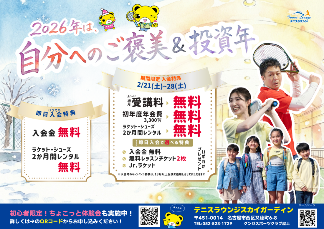 テニスラウンジは愛知県・岐阜県・三重県を中心に、関西・関東・北海道・沖縄に店舗を持つ日本最大級のテニススクールです。