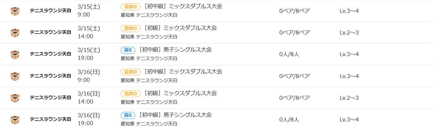 テニスベア(http://www.tennisbear.net)にご登録後お申し込み下さい。