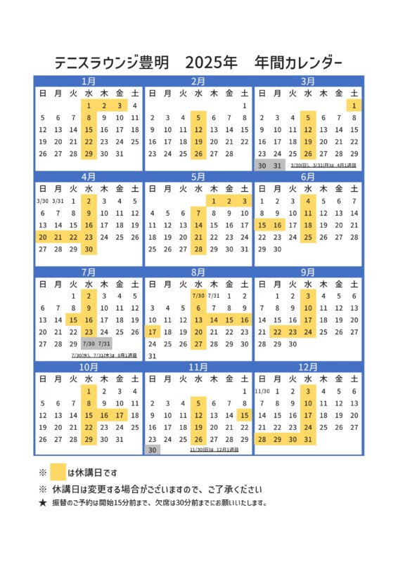次回休講日:12月27日(土) ~ 1月3日(土)