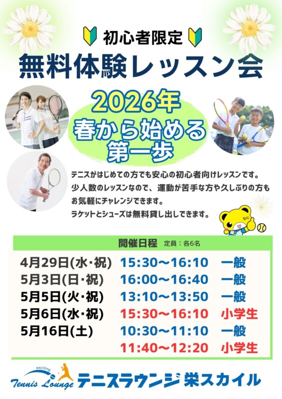 テニスがはじめての方でも安心の初心者向けの体験レッスンです!