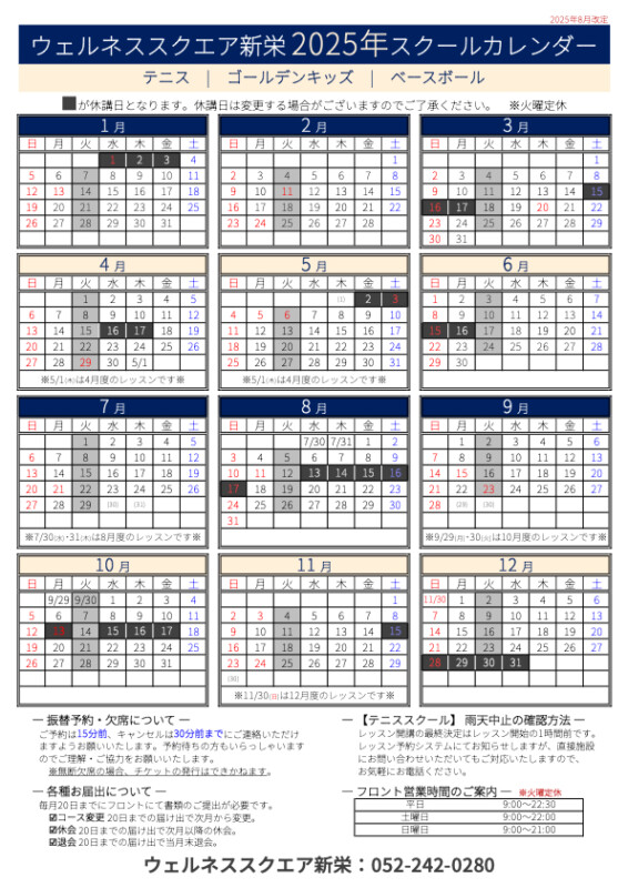 次回のスクール休講日は、 12月28日(日)〜2026年1月3日(土)