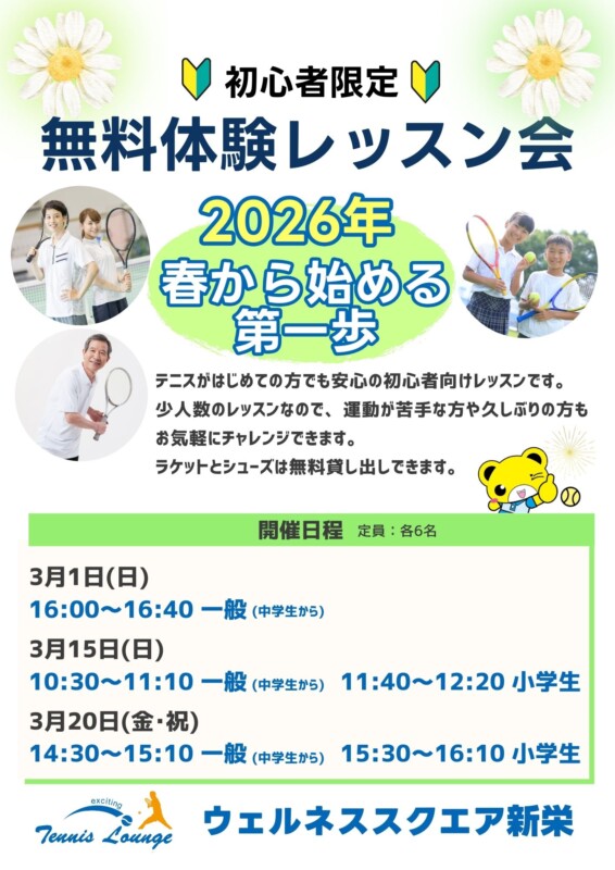 テニスがはじめての方でも安心の初心者向けの体験レッスンです!
