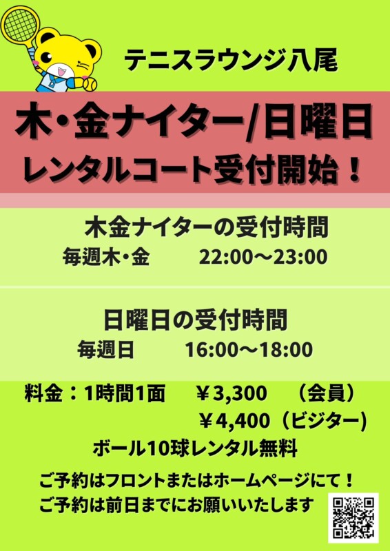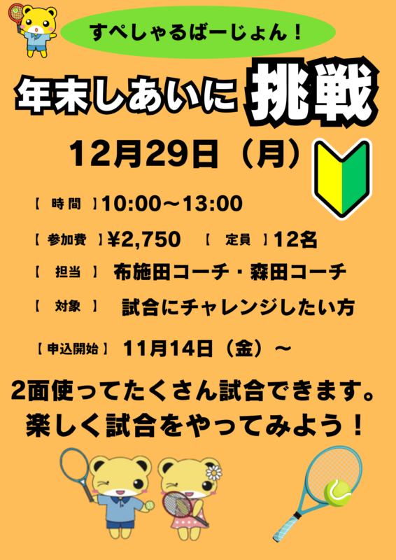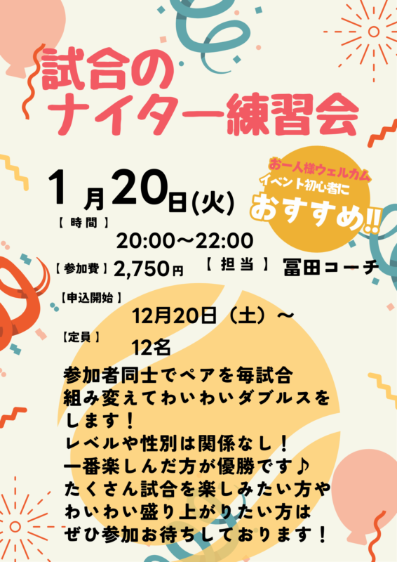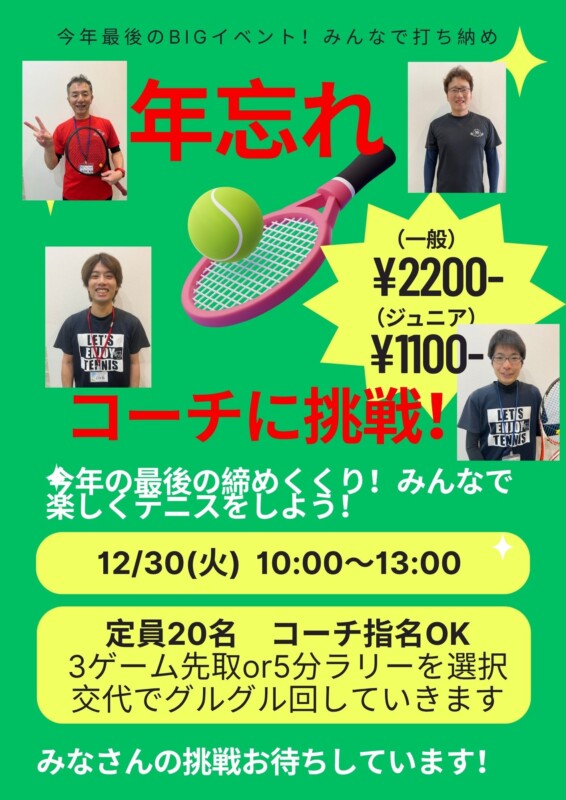 ※レッスンの補講に、グループレッスンに自信のない方や、試合前の調整にご活用ください。