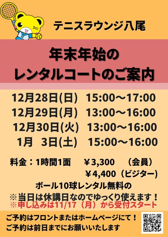 【休講日のお知らせ】 12/28(日)~1/3(土) 休講日