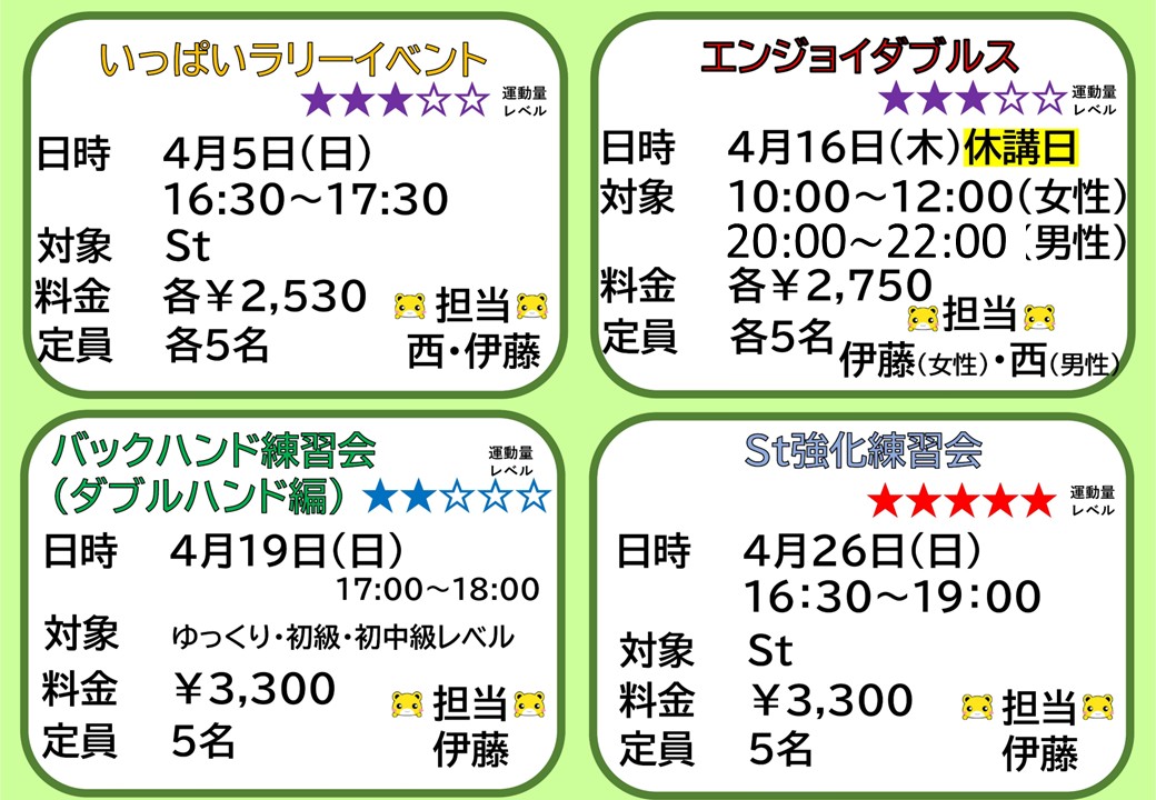 2,200円 担当:伊藤 各4名 ★3